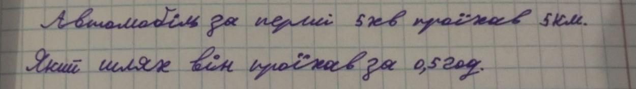 так как если за 5 минут машина проехала5 км то получается что за каждую минуту автомобиль проезжает 1 км. В 0,5 год 30 минут отсюда получается 30 км