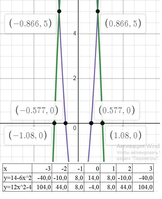 Решением являются точки пересечения графиков (-0,866;5) и (0,866;5).
