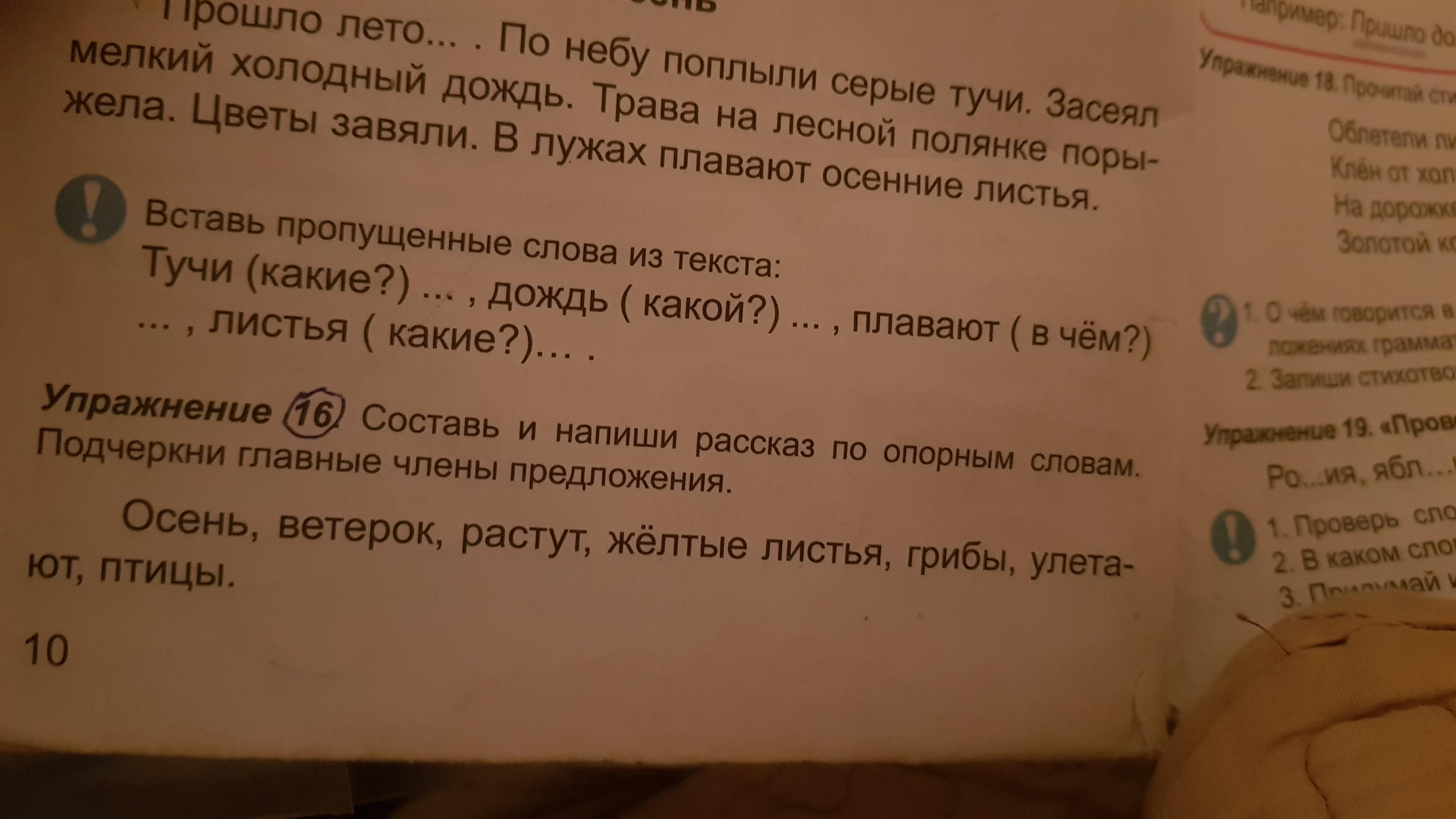 наступила осень.дует ветерок.растут грибы.падают жёлтые листья.птицы улетают на юг.