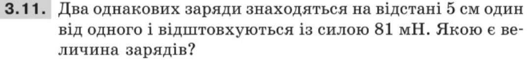 q1,2=√(F*r²/k)=√(0,081*0,05²/9*10⁹)=1,5*10⁻⁷Кл