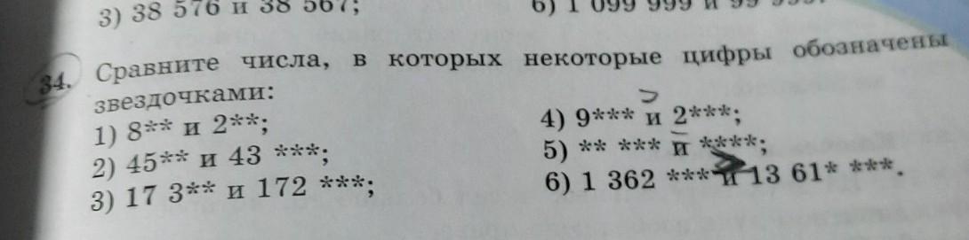 34. Сравните числа, звездочками: 1) 8** и 2**; 2) 45** и 43 ***; 3) 17 3** и 172 ***; которых некоторые цифры обозначены 4) 9*** и 2***; 5) ** *** и ****; 6) 1 362 ***13 61* ***. Только четные. Даю 50баллов