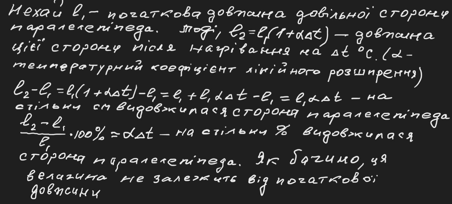 При нагріванні паралелепіпеда зі сторонами 3м на 4м на 5м його менша сторона збільшилася на 1%. На скільки відсотків змінилася довжина найбільшого ребра?
