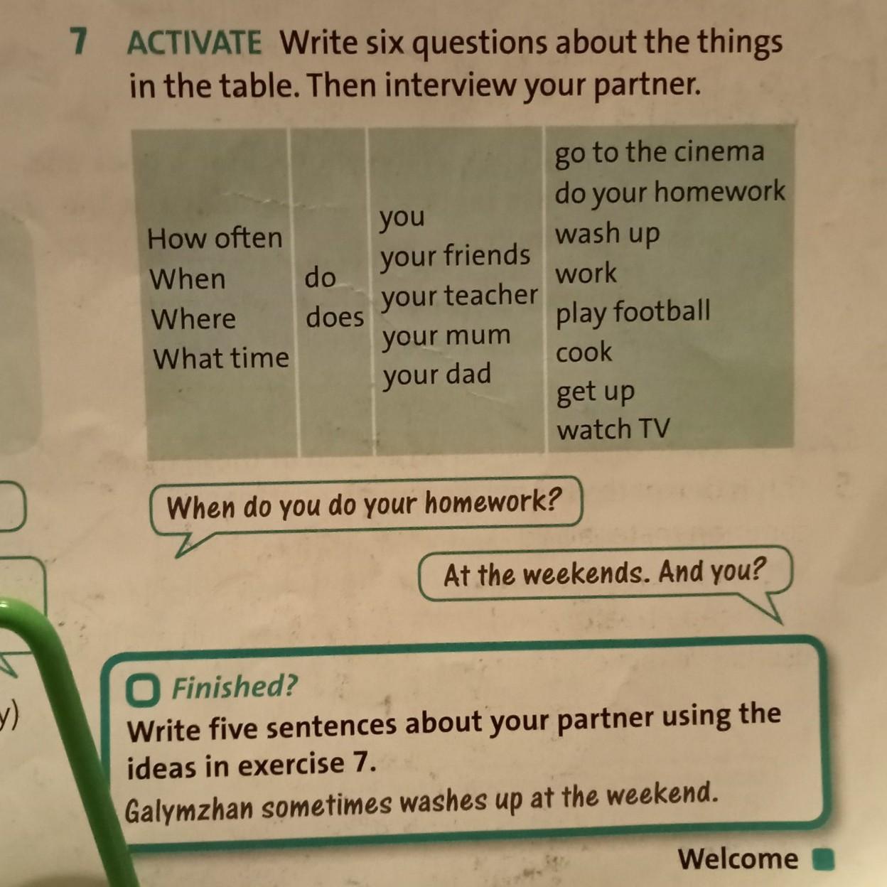 ACTIVATE Write six questions about the things in the table. Then interview your partner