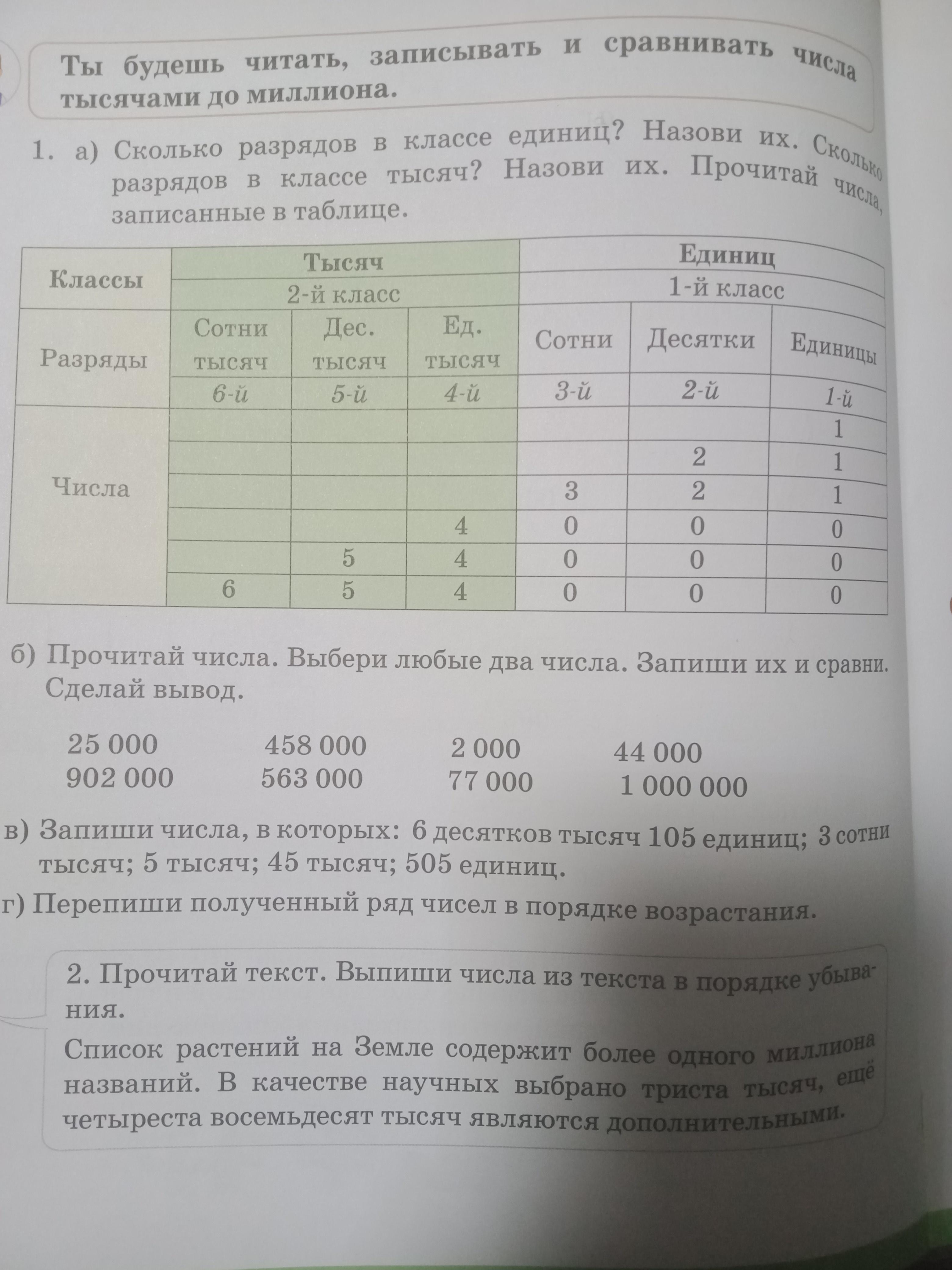 Сколько раз рядов классе единиц назови их сколько разряда классе тысяч прочитай числа записанные в таблице