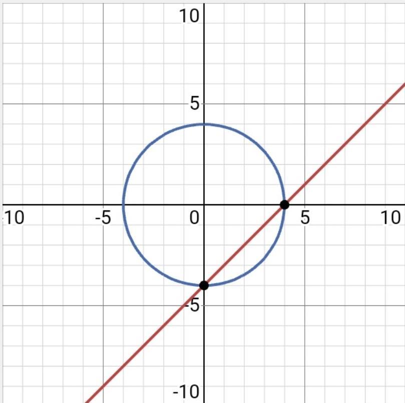 Ответ: (х1; у1); (х2; у2) = (4; 0),(0; -4)