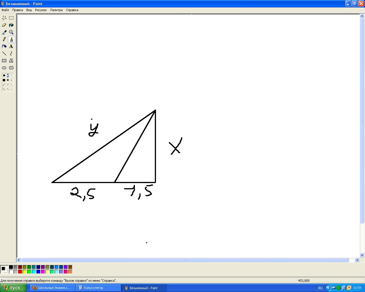 у/2.5 = х/1.5 отсюда 3у = 5х, х = 3у/5