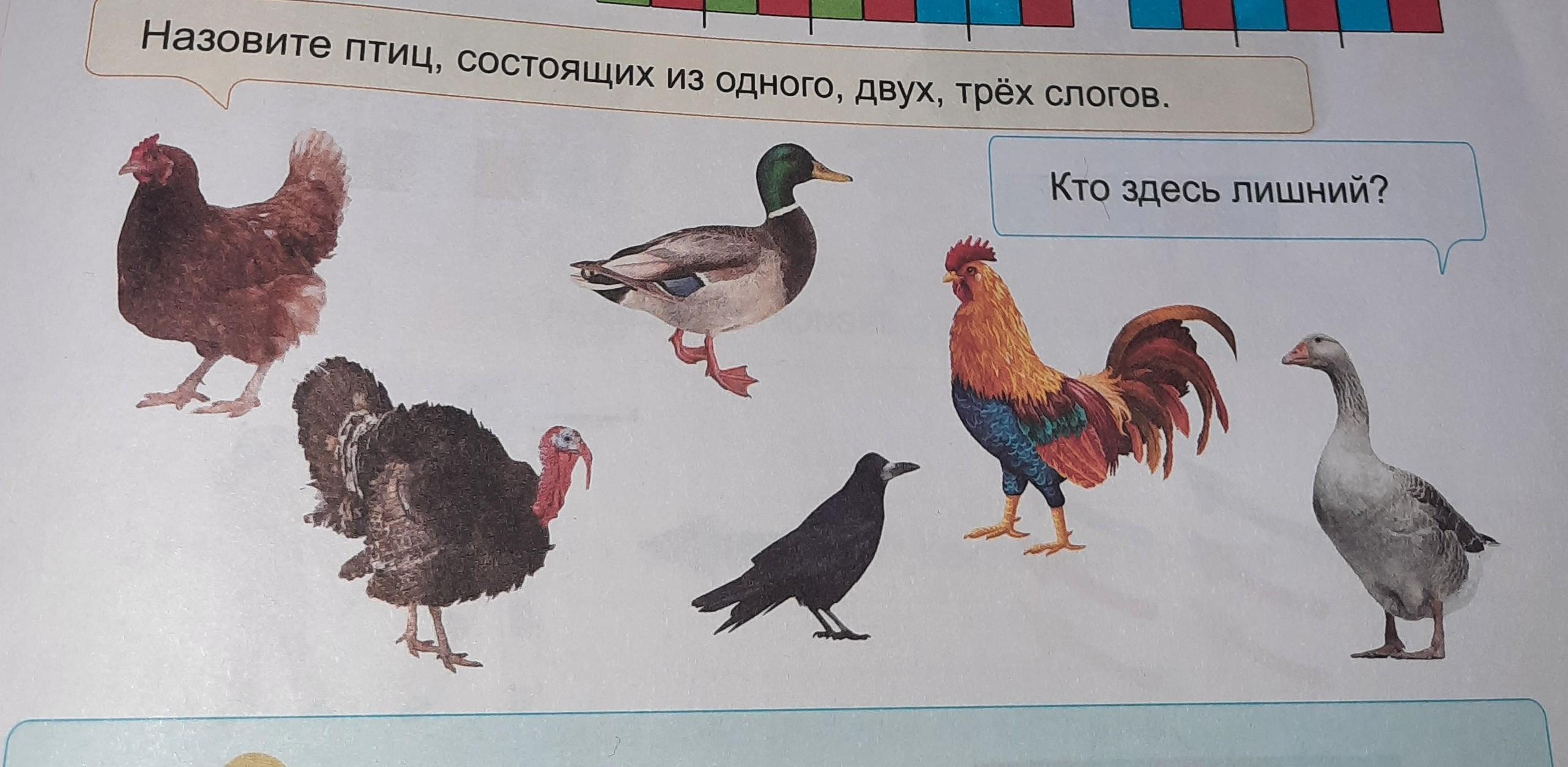 ку-ри-ца, ин-дюк, во-ро-на, ут-ка, пе-тух,
