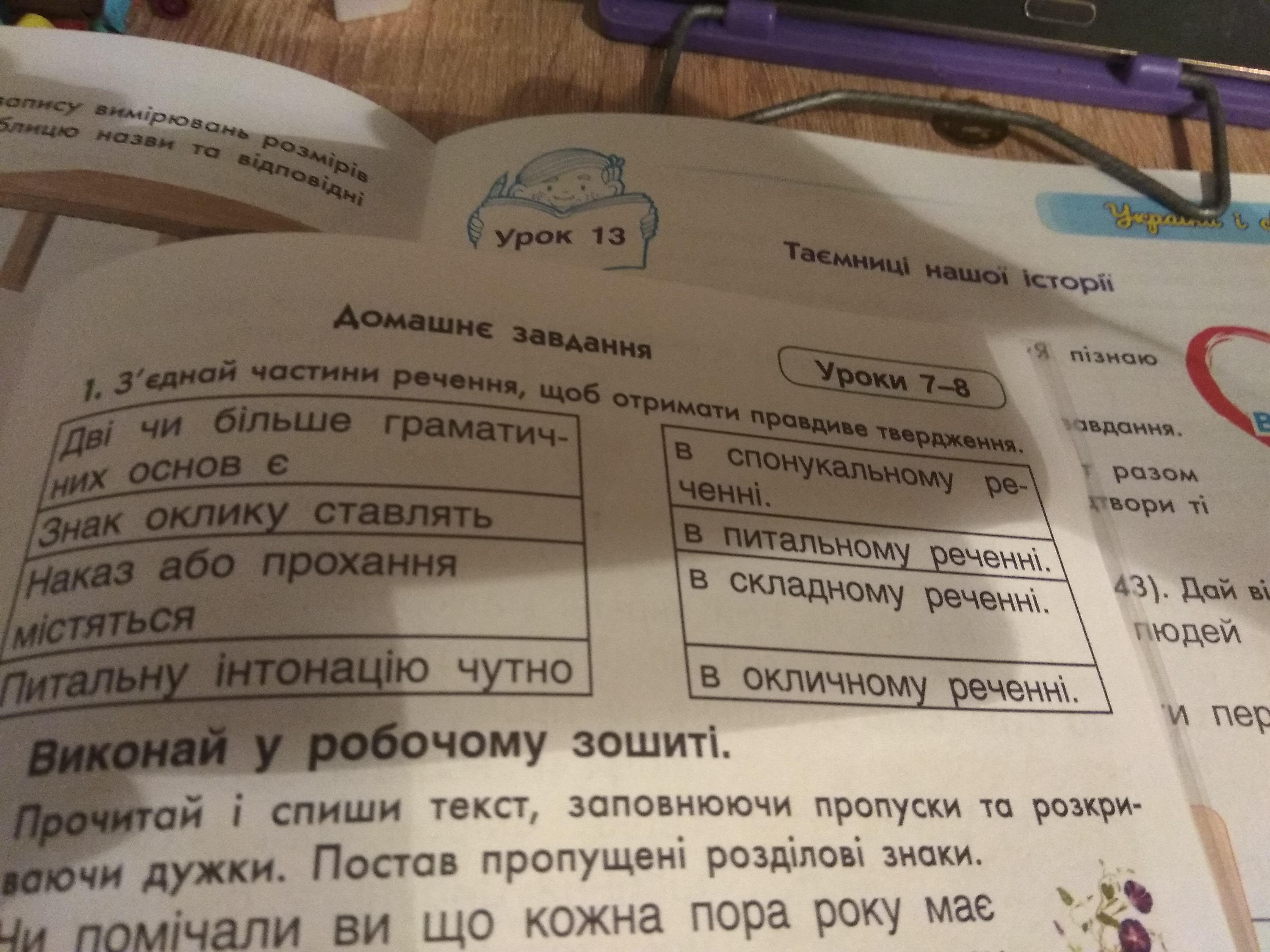 дві чи більше граматичних основ є в складному реченні, знак оклику ставлять в окличному реченні,наказ або прохання містяться в спонукальному реченні, питальну інтонацію чутно в питальному реченні