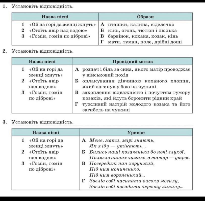 1) 1 б; 2а; 3 г;