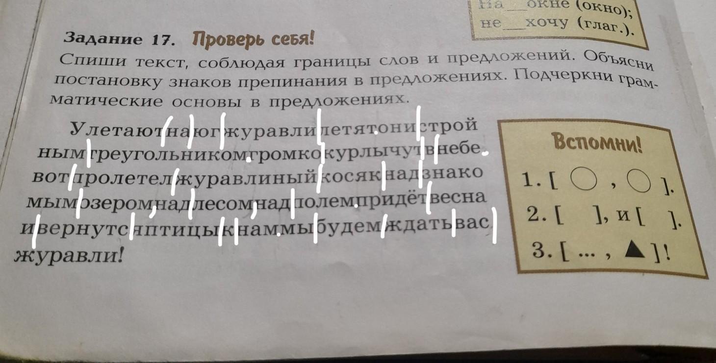 Ответ на фото, просто линия это пробел, а там где точки это конец предложений. Маленькая линия это запятая. Если не понятно - спрашивайте :)
