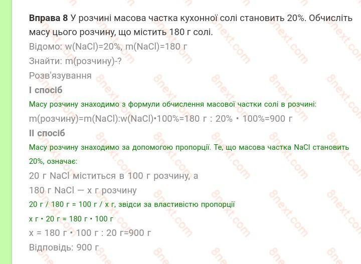 СРОЧНОООО!!!!!!! ДАЮ 40!! У розчині масова частка кухонної солі становить 20%. Обчисліть масу цього розчину, що містить 180 г солі