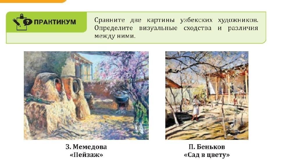 ПРАКТИКУМ Сравните две картины узбекских художников. Определите визуальные сходства и различия между ними.