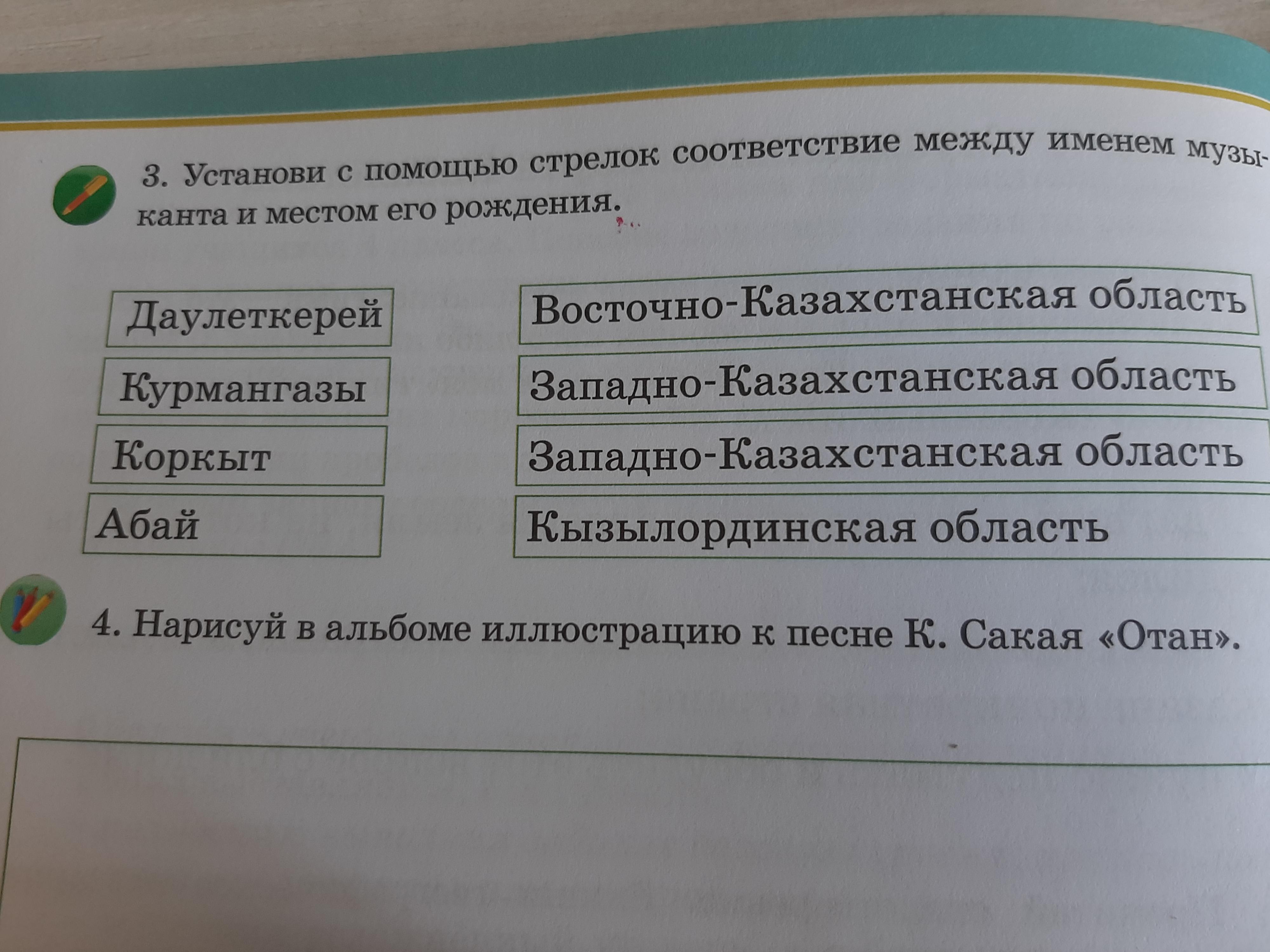 Установи с помощью стрелок за отверждения между имён музыканты и местности его рождения