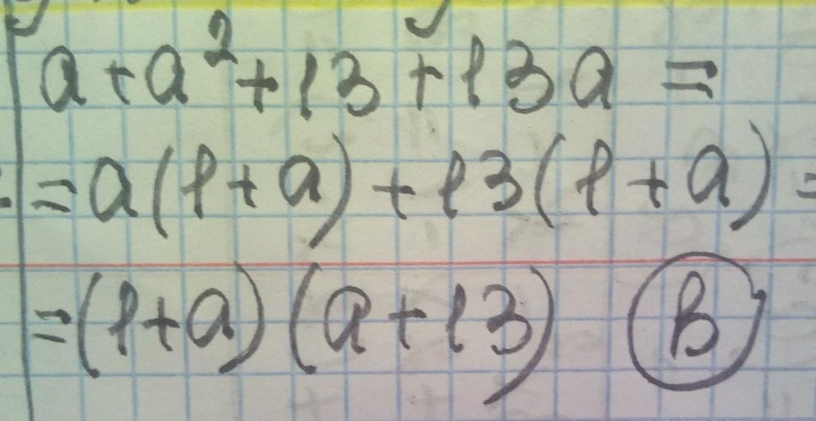 розкласти на множники:a+a²+13+13a a)(a-1)(13+a) b)(1+a)(a+13) c)13(1+a) d)a(1+a) пожалуйста! с решением пж МНОГО БАЛЛОВ