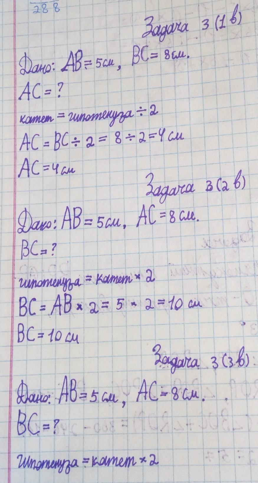 3. Две СТОРОНЫ прямоугольного треугольника равны: 5 см и 8 см. Найдите третью сторону треугольника. Рассмотрите все возможные случаи. [4]