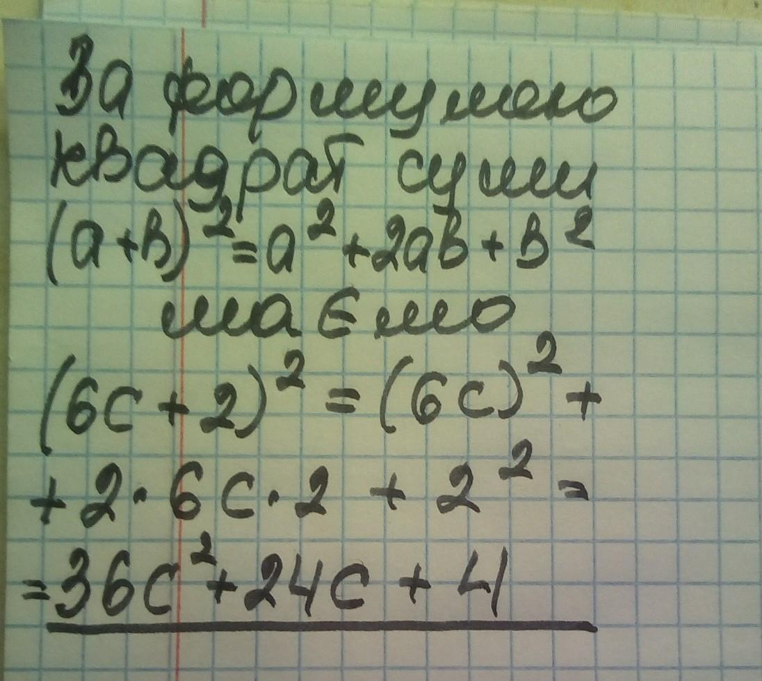 (6с + 2)² = 6² * с² + 2*6*с*2 + 2 * 2 =