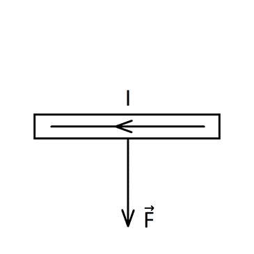 Виберіть правильний напрямок силових ліній магнітного поля, у яке помістили провідник, якщо напрямок струму у провіднику і напрямок сили Ампера вказані на рисунку.