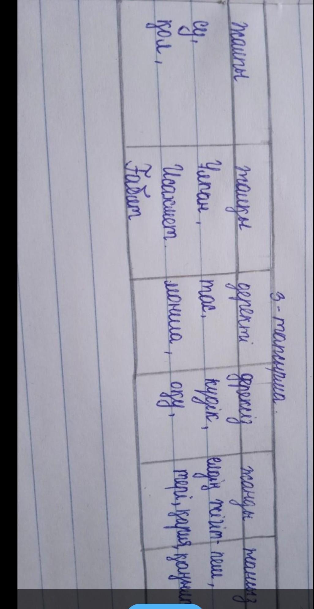 3-тапсырма. Мәтіннен деректі және дерексіз зат есімдерді тауып, кестені толтырыңдар. Деректі зат есім Дерексіз зат есім кандай сөздермен ауыс-