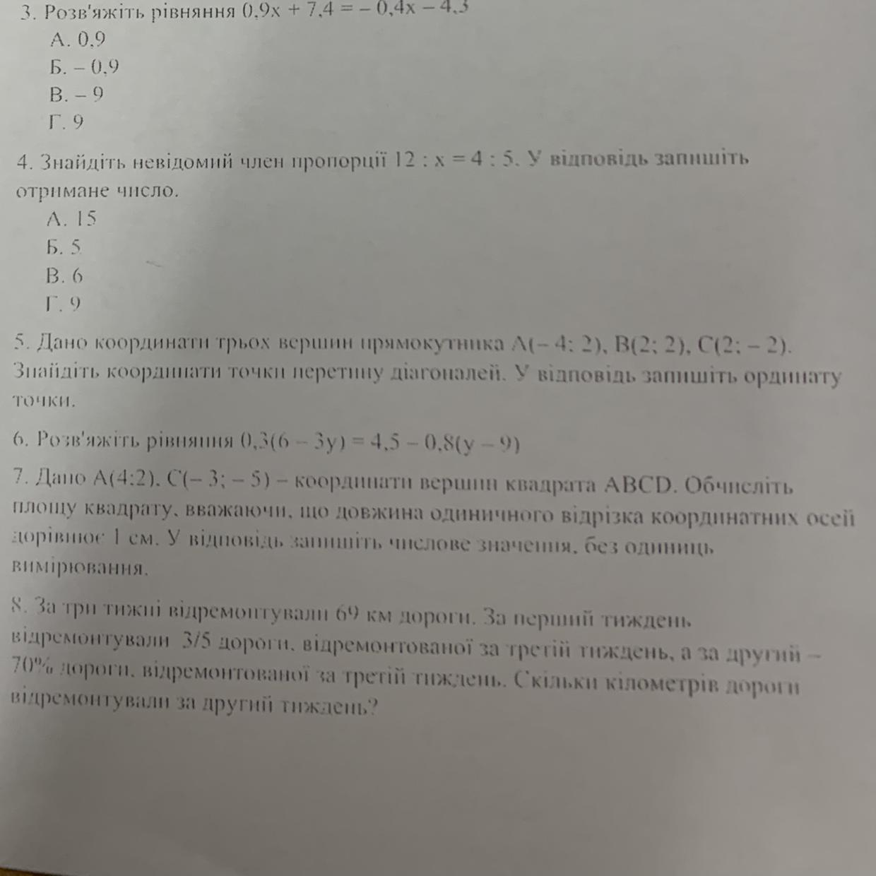 7. Дано А(4:2). C(- 3; - 5) - координати вершин квадрата ABCD. Обчисліть