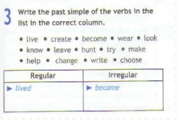 regular : lived , created , looked, hunted , tryed , helped , changed,
