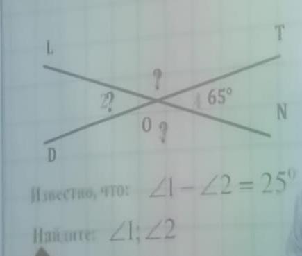 ∠LOD=∠TON=65° по свойству вертикальных углов (это ∠2)