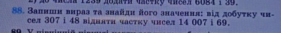 8. Запиши вираз та знайди його значення: від добутку чи- сел 307 і 48 відняти частку чисел 14 007 i 69.ПОМОЖіТЬ