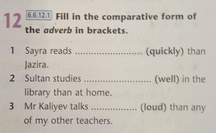 12 Fill in the comparative form of the adverbs in brackets.ПОМОГИТЕ СРОЧНО ПОЖАЛУЙСТА,ДАМ 30 БАЛЛОВ