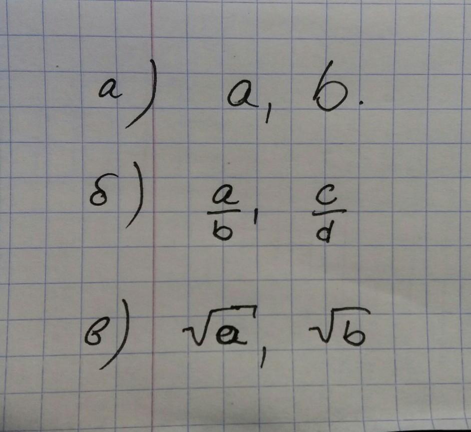 Ребята, в Б) лучше запишите (а+1) / (а-3) и (b+2) / (b-3). А в В) лучше запишите 5х/7с и 4у/5d. Это будет более удачно