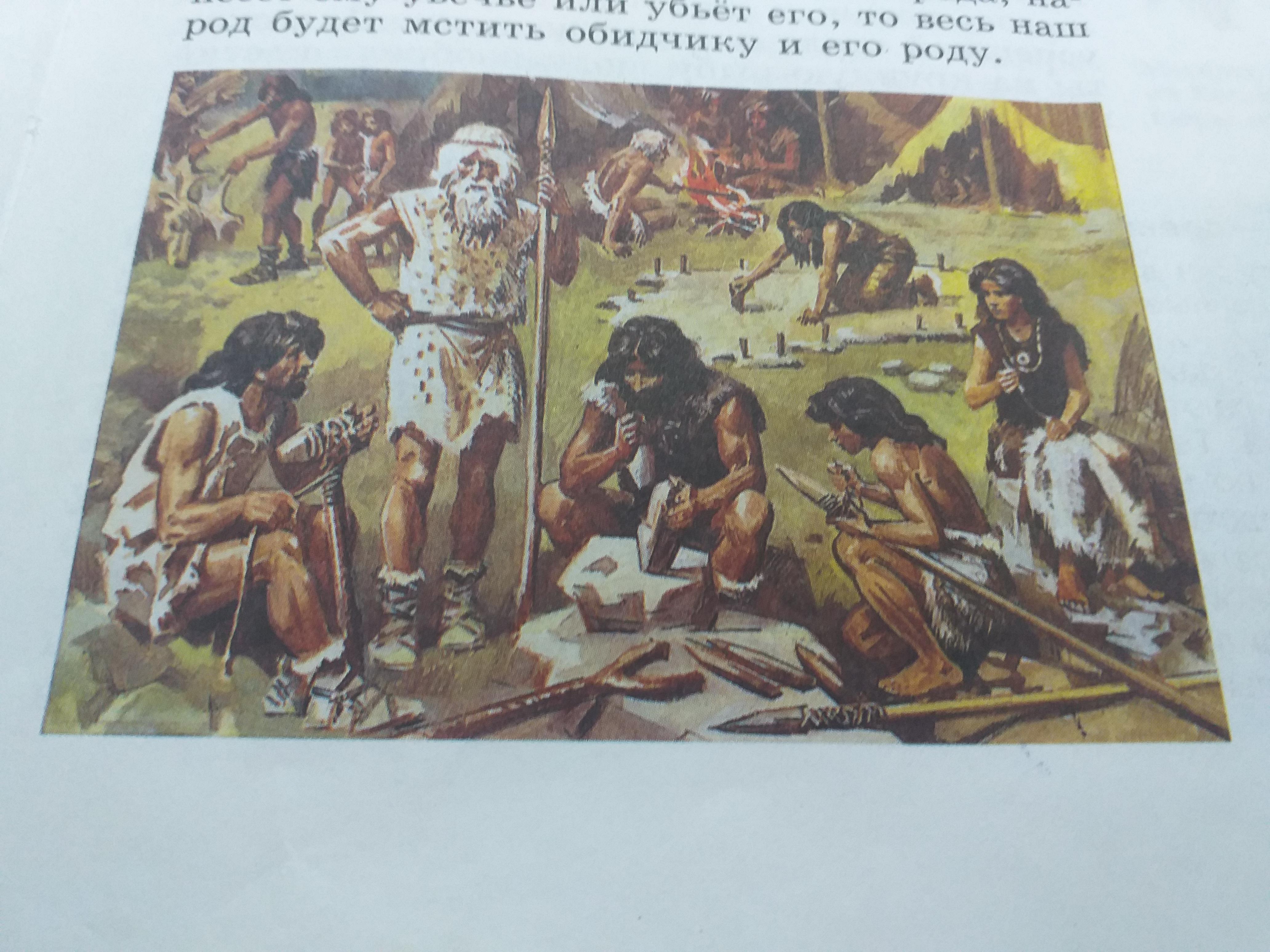 каменный век, человеки из каменного века, оружия каменного века, человеки которые делают оружию, женщина которая делает ковёр из кожа дикого зверя, и женщина которая шьёт одежду из кожа животных