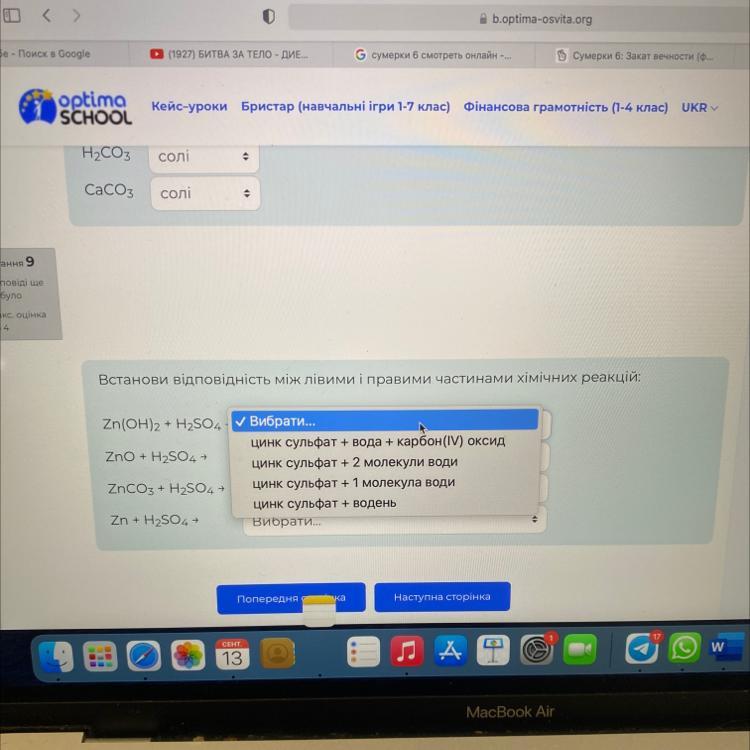 Zn(OH)2 + H2SO4 - √ Вибрати...