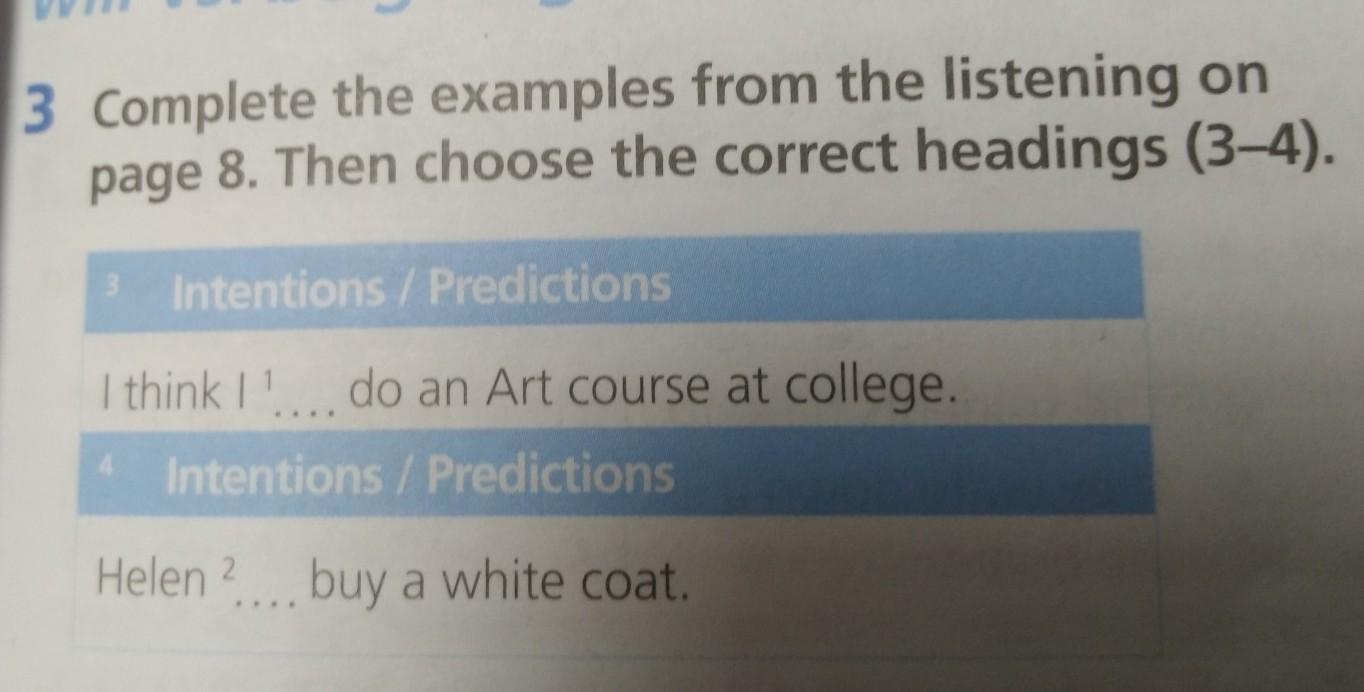 3 complete the examples from the listening on page 8. Then choose the correct headings пж