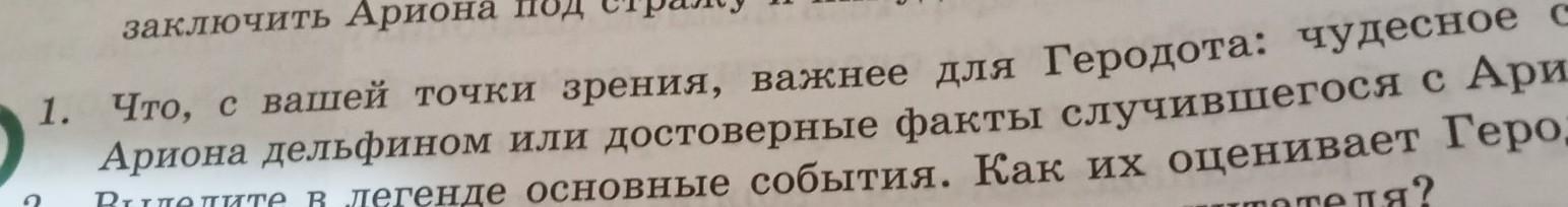 помогите пожалуйста 1. Что, с вашей точки зрения, важнее для Геродота: чудесное спасение Ариона дельфином или достоверные факты случившегося с Арионом?