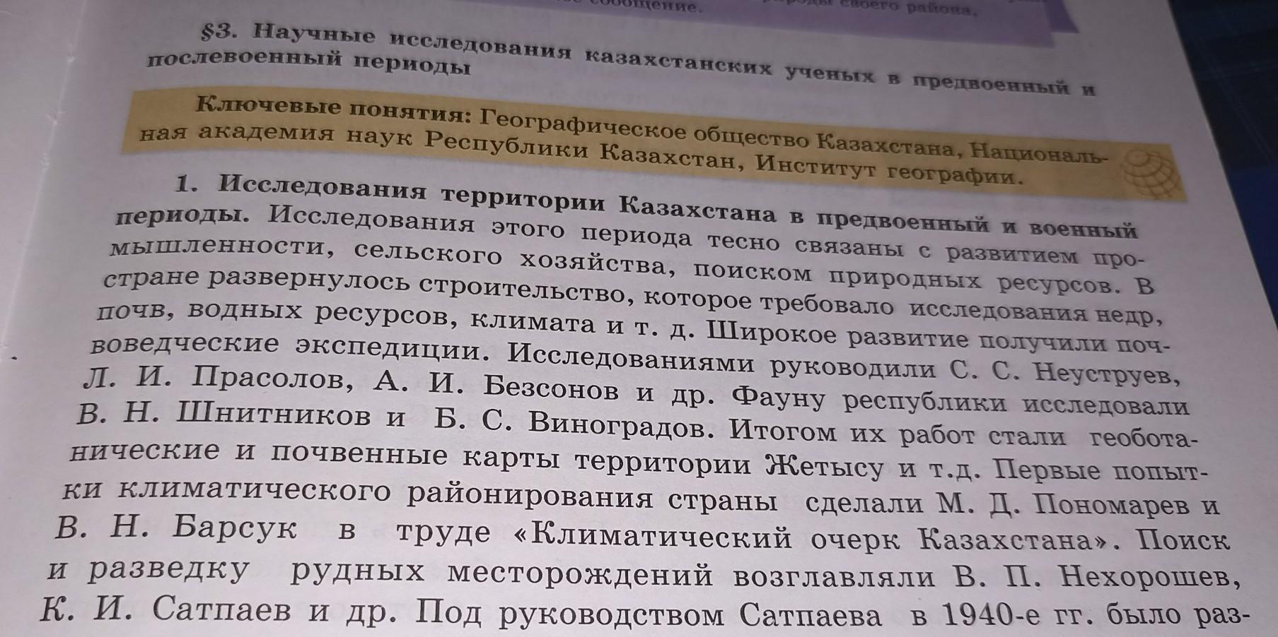 В военный периоды казахастан делал исследование и открытие промышленности сельского хозяйства и поиск разных природных ископаемых.В стране начало активное строительства но надо было изучить почву климат.И начались разные экспедиции что бы изучить почву многие исследователи руковадили и начали изучать например такие как С.С.Неуструев,А.И.Безсонов Фауну исследавили Шнитников Виноградов их работы стали важным открытием для Жетысу.Первые которые исследовали климат Пономарев Барсук.И в поисках рудников под командованием Нехорошева и Сатпаева в 1940 года начали находить рудники такие как свинец и металы.