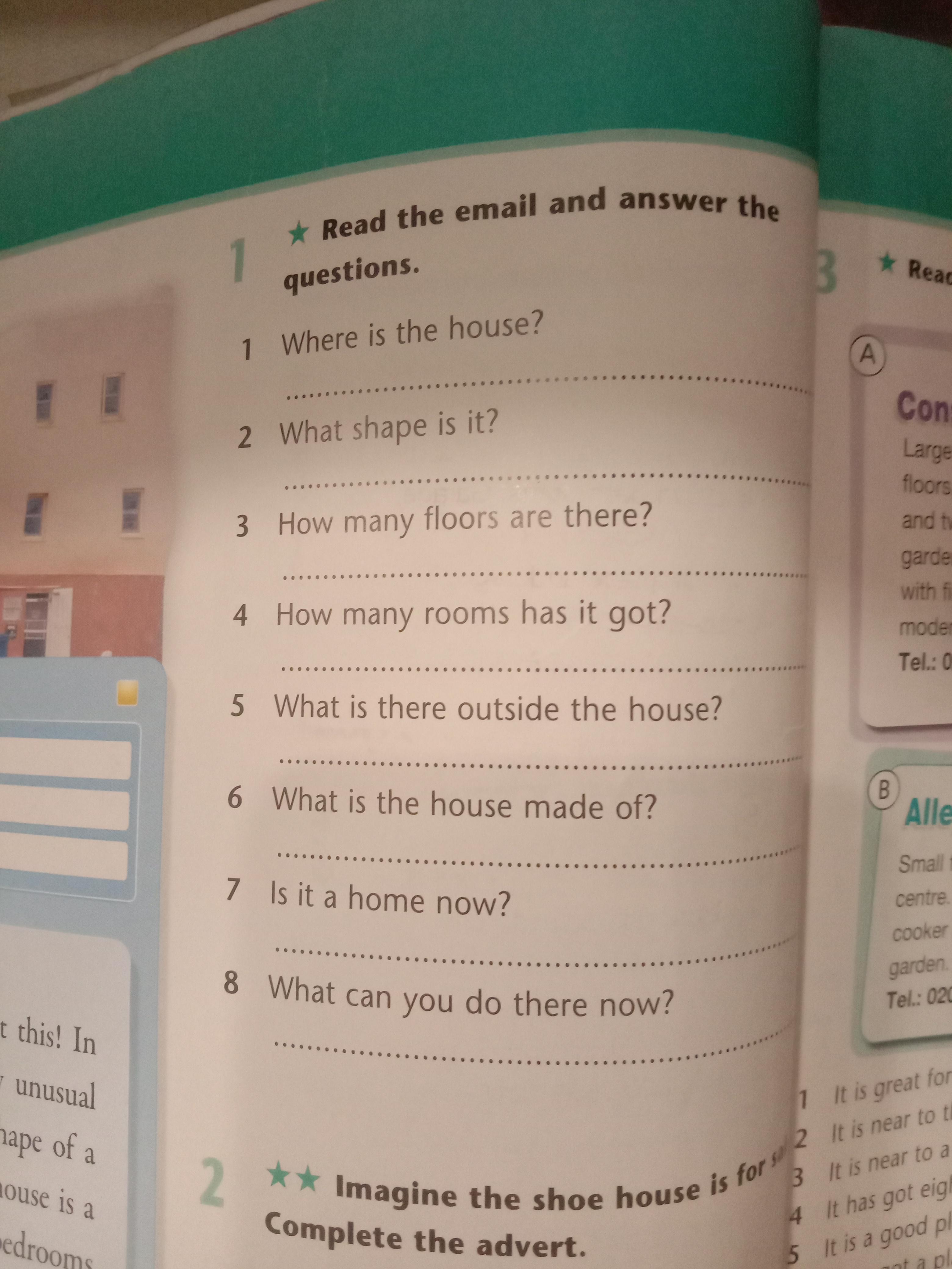 Обычно в английских учебниках каждый вопрос связанный с предложением. 1 вопрос - ищи ответ в первом предложении, 2 вопрос - значит во втором предложении ответ. Советую после написания, для общего развития, перевести предложения, для себя, чтобы знать перевод и понимать о чем идеться речь. Удачи!
