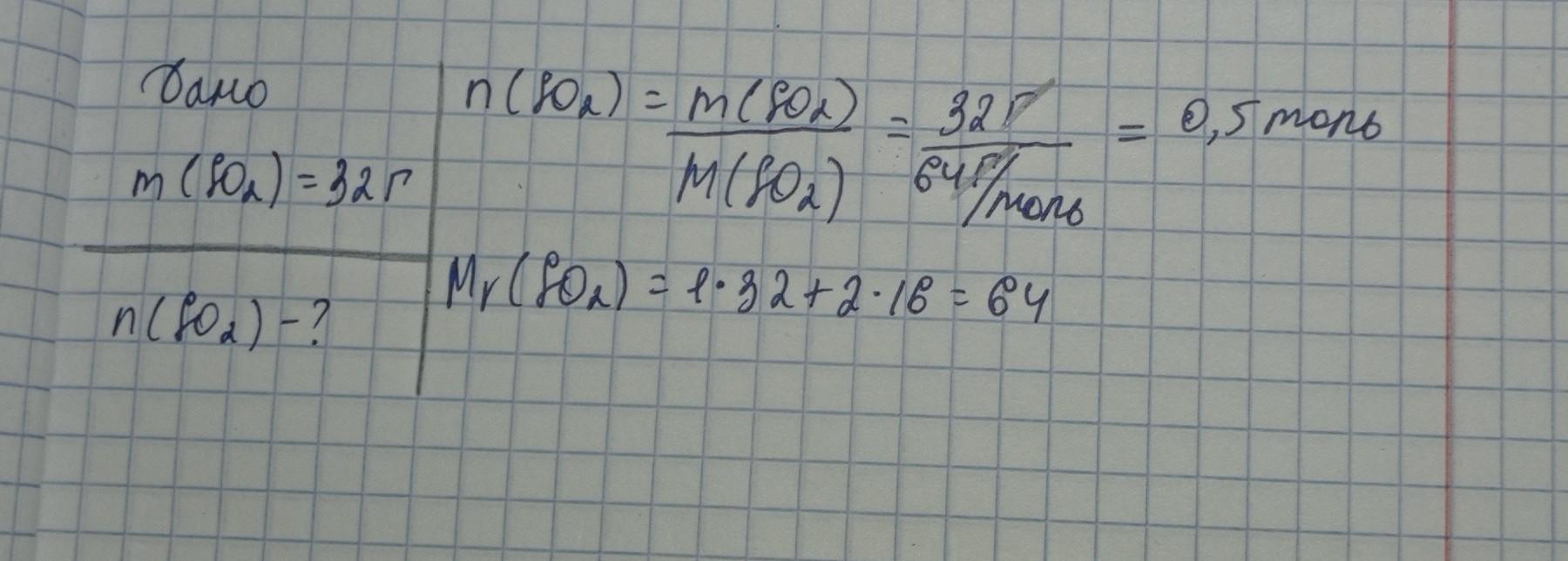 Количество вещества в диоксиде серы = 0,5 моль