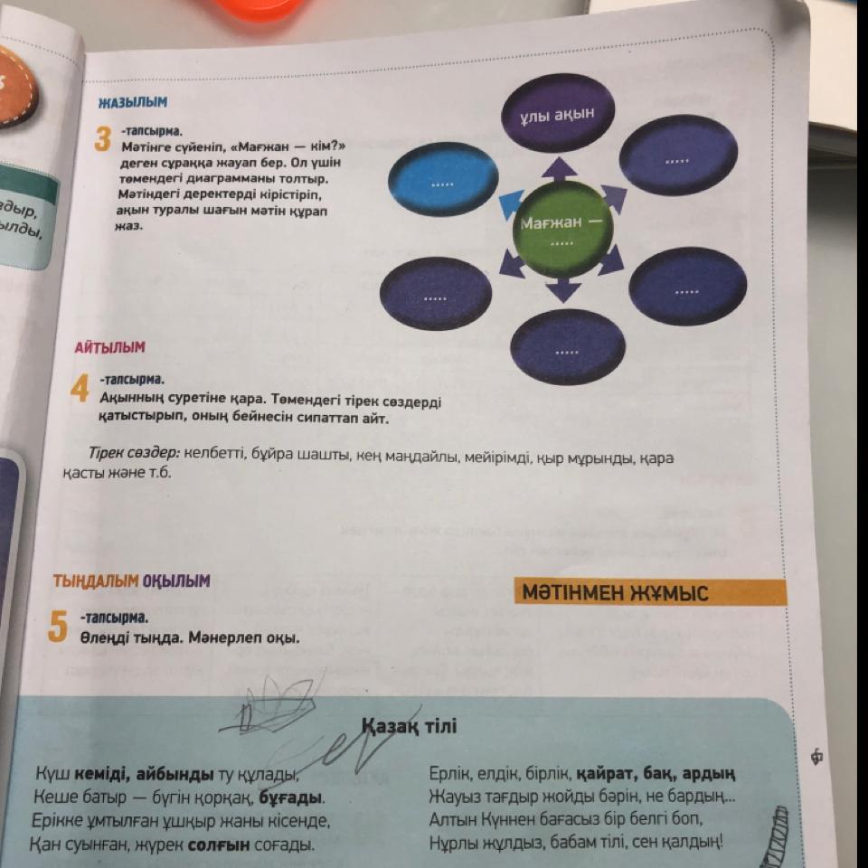 Өлең мәтініндегi кою карiппен жазылған сөздерді дәптерiңе жаз. Олардың мағынасын Қазақ
