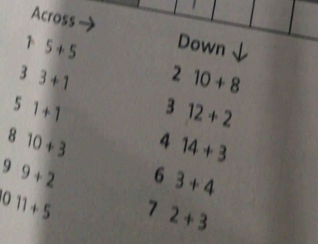 Across- 1 5+5 3 3+1 5 1+1 8 10+3 9 9+2 10 11 + 5 Down↓ 2 10+8 3 12+2 4 14+3 63+4 7 2+3 2 помогите пж