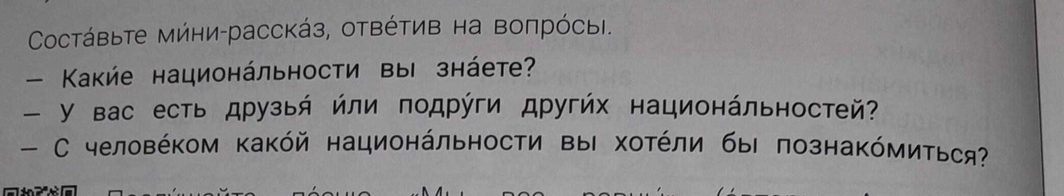 У меня есть немного друзей с Беларуси/России/Украины(возьми на выбор). Они очень приятные люди и всегда ветливы со мной. от них я узнал(а) немного о их стране и языке.