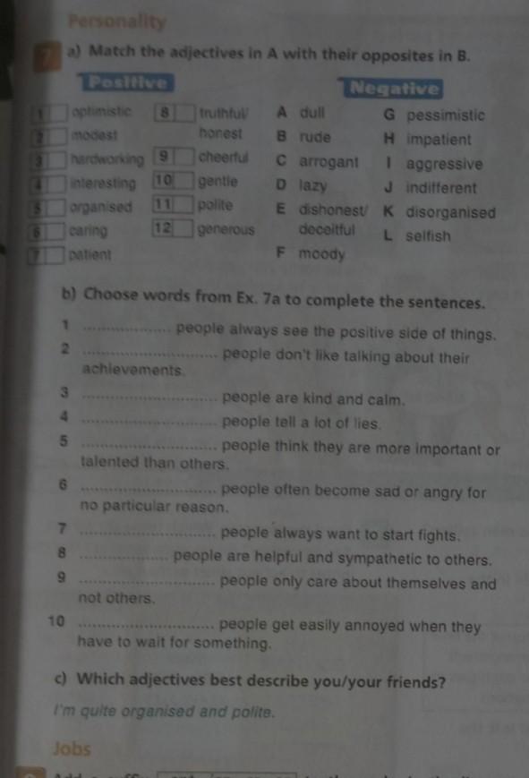 - organised - K. disorganised (организованный-неорганизованный, безответственный)