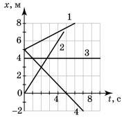 Пояснення:4) Рівномірний рух в додатному напрямі осі Ох зі швидкістю 1,5 м/с; рух почався від тіла відліку