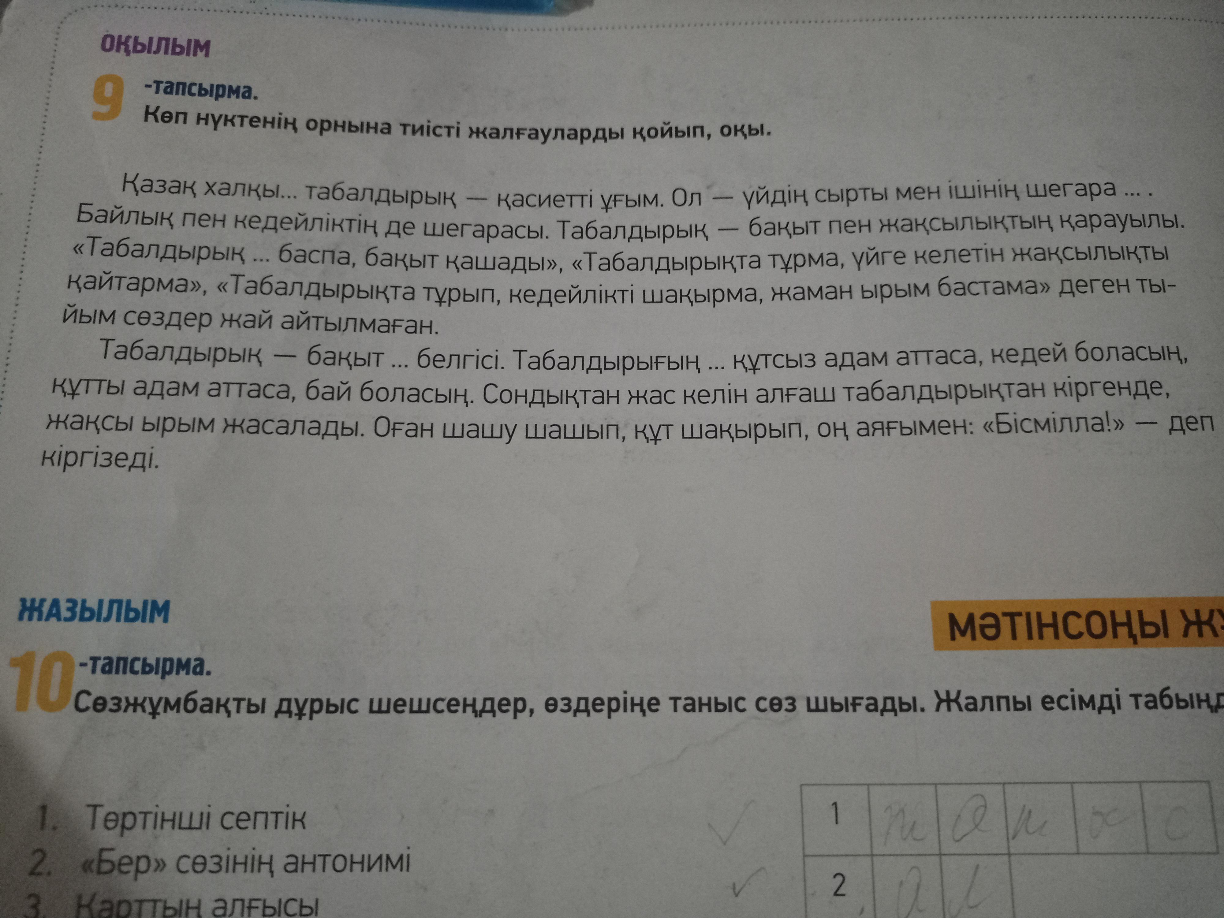 Казахский язык домашка 9 тапсырма