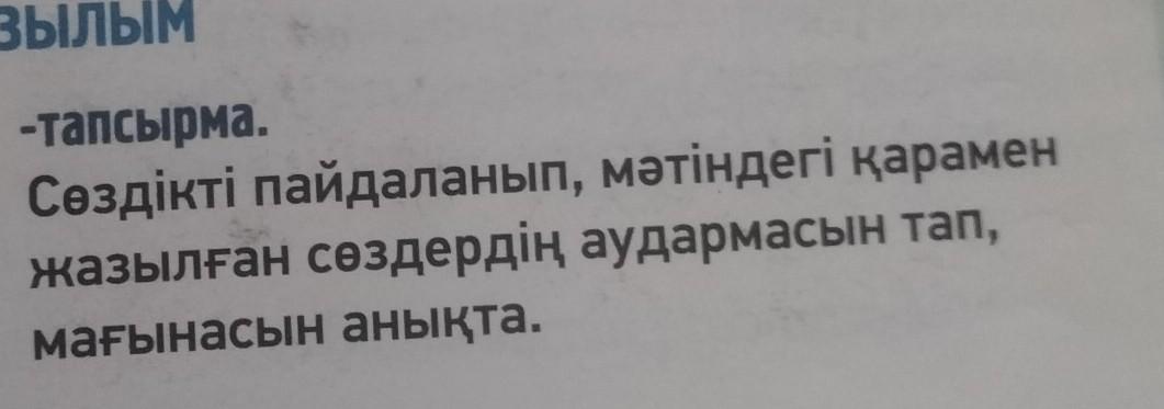 5-тапсырма Сөздікті пайдаланып мәтіндегі қарамен жазылған сөздердің аудармасын тап мағынасын анықта