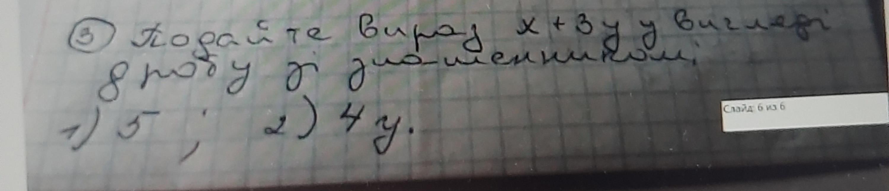 подайте выражение х+3у y(в виде 8 дроби) со знаменателем; 1)5; 2)4у