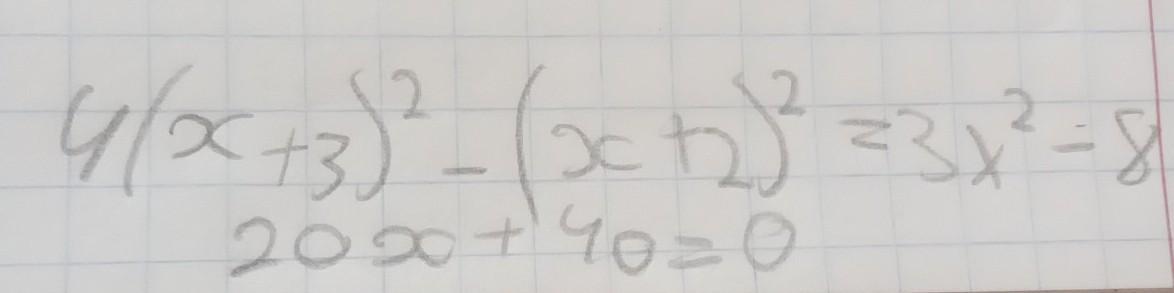 Решить уравнение: 4(x+3)² -(x+2)²=3x²-8;