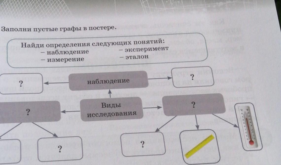 Ответ: там где линейка - измерение.(на фиолетовом фоне)- эталон на белом. Т.к. "наблюдение" уже есть не пиши. Эксперимент - (слева) - наблюдение и НАВЕРНОЕ эксперимент
