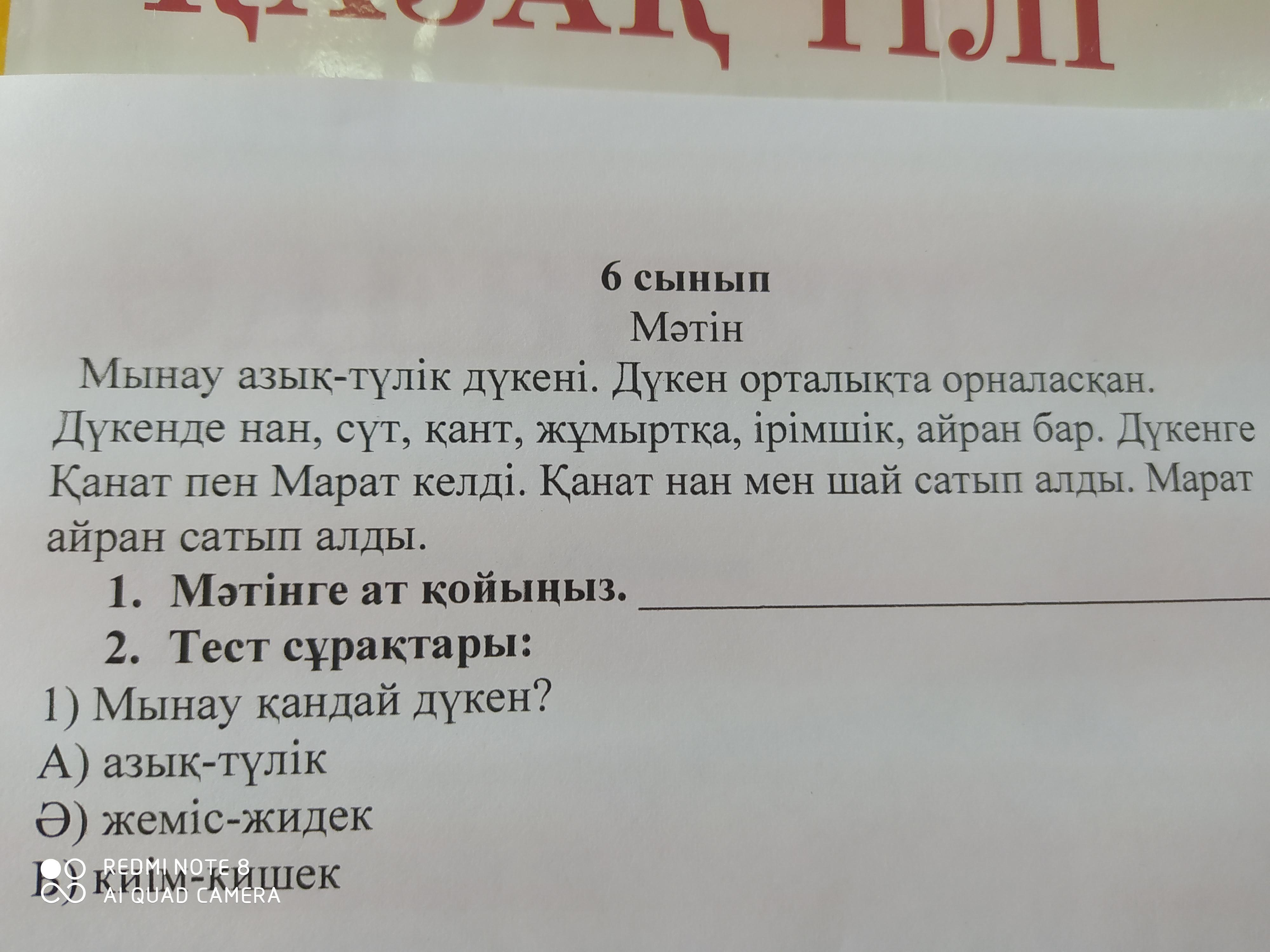 2. 1) Мынау қандай дүкен? А) азық-түлік
