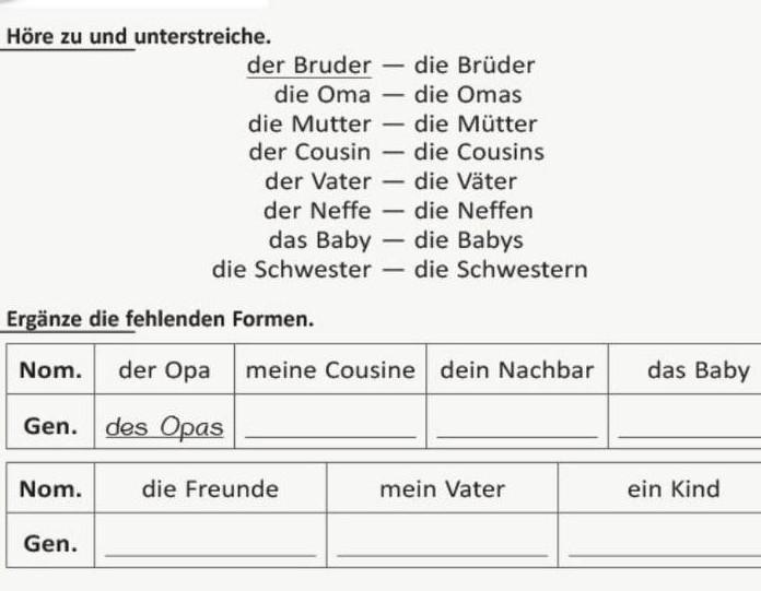 meiner Cousine, deines Nachbarn, des Babys. der Freunde, meines Vaters, eines Kindes