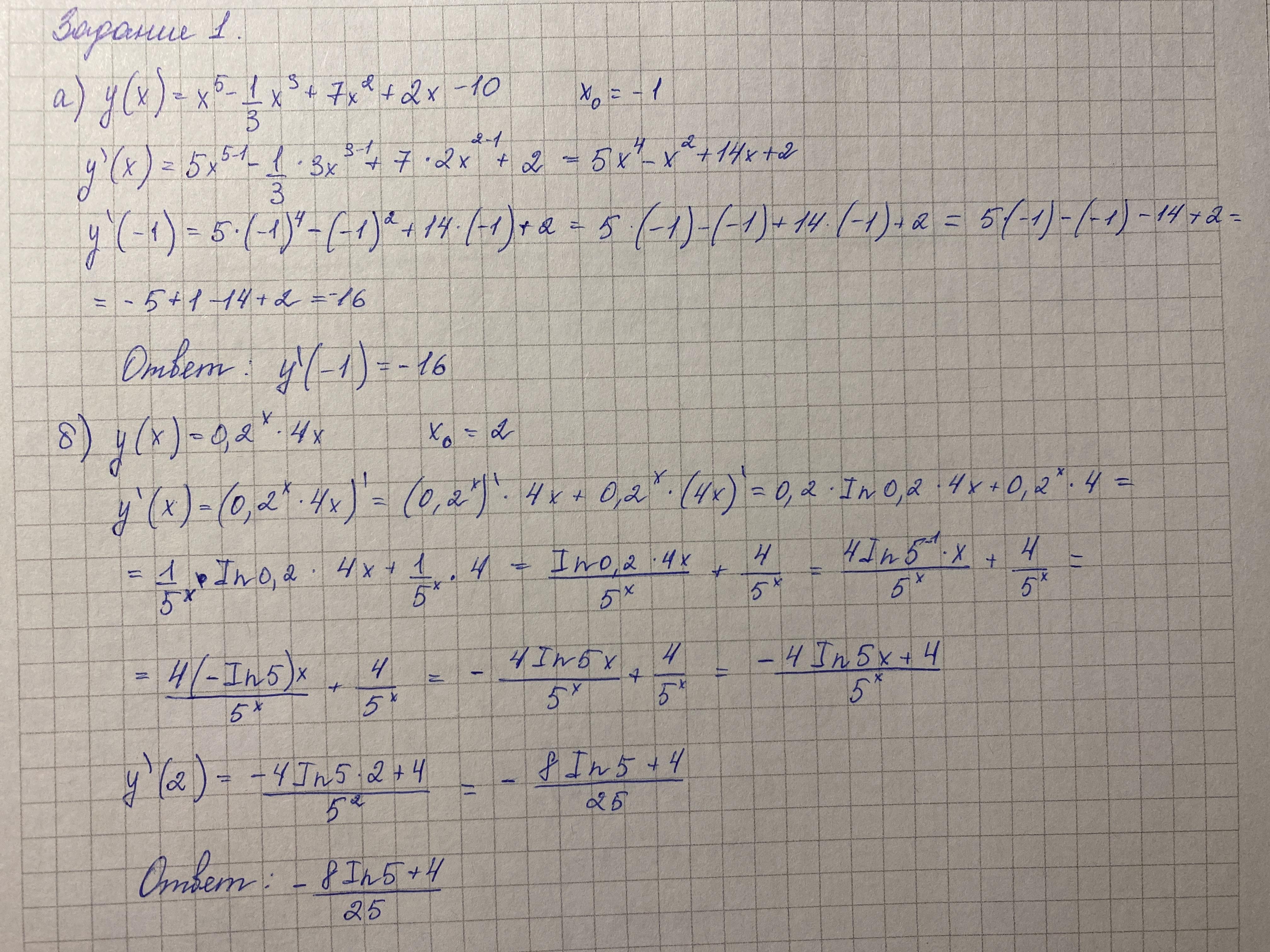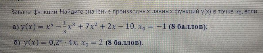 Заданы функции. Найдите значение производных данных функций y(x) в точке x0, если