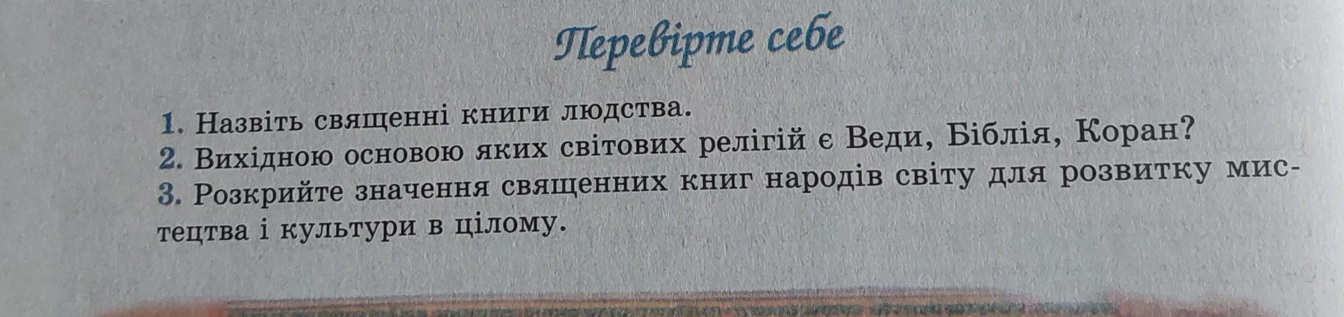 3) Спочатку історії з книг поширювали в усній формі, а потім стали записувати й перекладати різними мовами. Священні книги стали основою різних релігій, бо в них закладено духовний досвід багатьох поколінь, моральні настанови, уявлення про добро і зло. Священні книги людства стали невичерпним джерелом світового мистецтва. Вони також визначають норми поведінки й моралі не тільки в давнину, а й у наш час