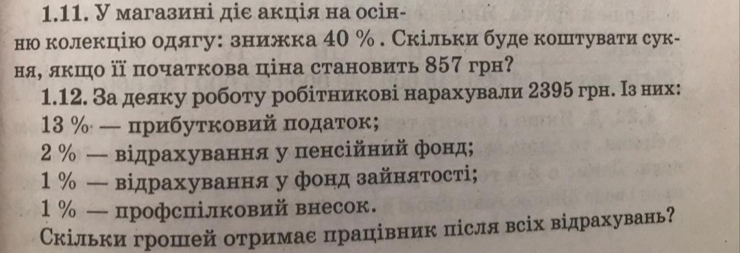 1) 857 * 0,4 = 342,8 (грн) - составляет скидка